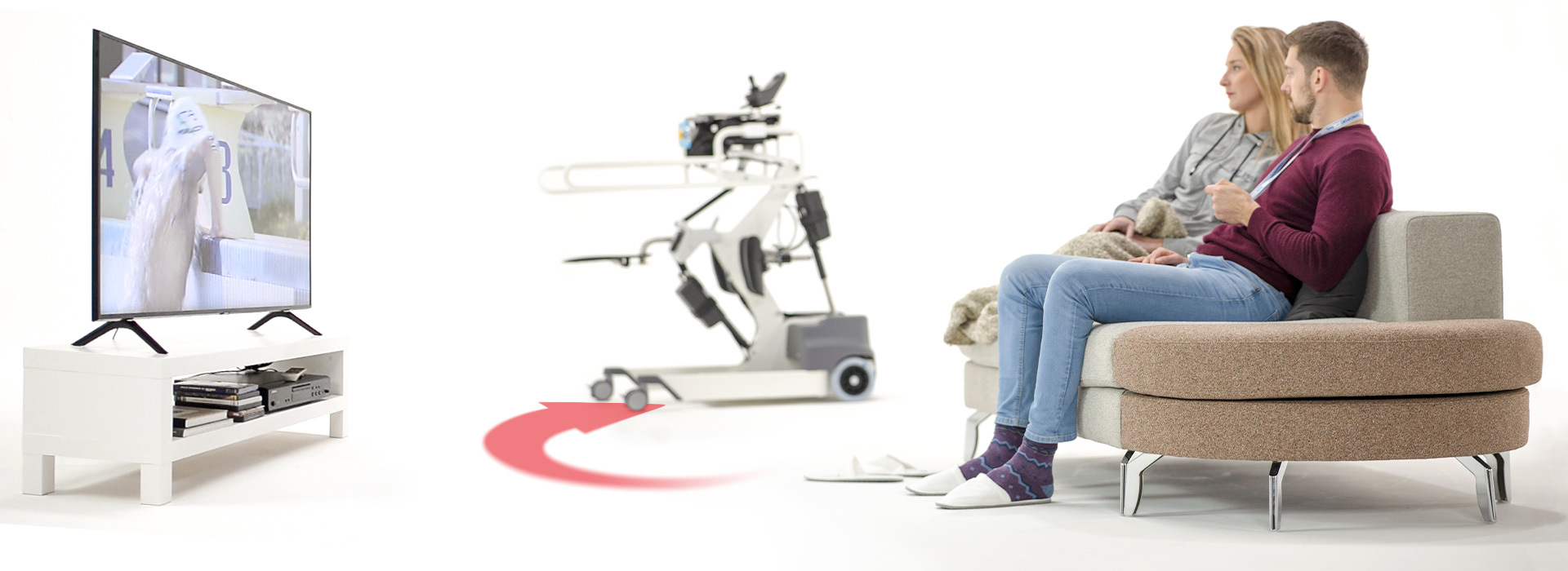STRUZZO 500 RC - TELECOMANDATO - Veicolo standing in postura eretta con supporto del bacino a sella - Movimentazione sul piano autonoma - Base compatta e fornito di serie con il sellino lungo - Regolazione elettrica dell’altezza