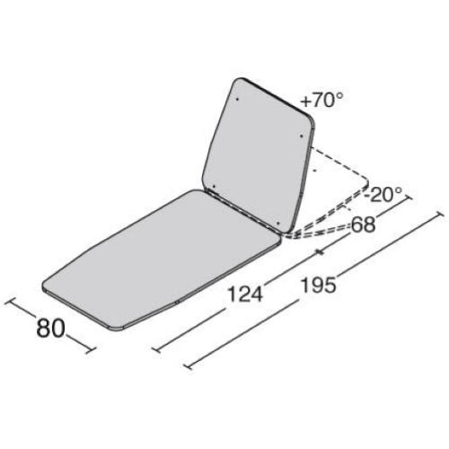 Die Liege besteht aus einem beweglichen Teil, einem gasfederunterstützten Kopfteil und einem festen Teil.